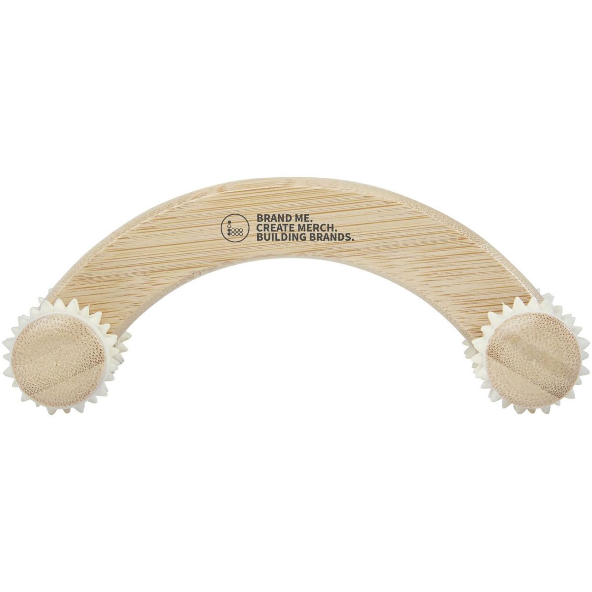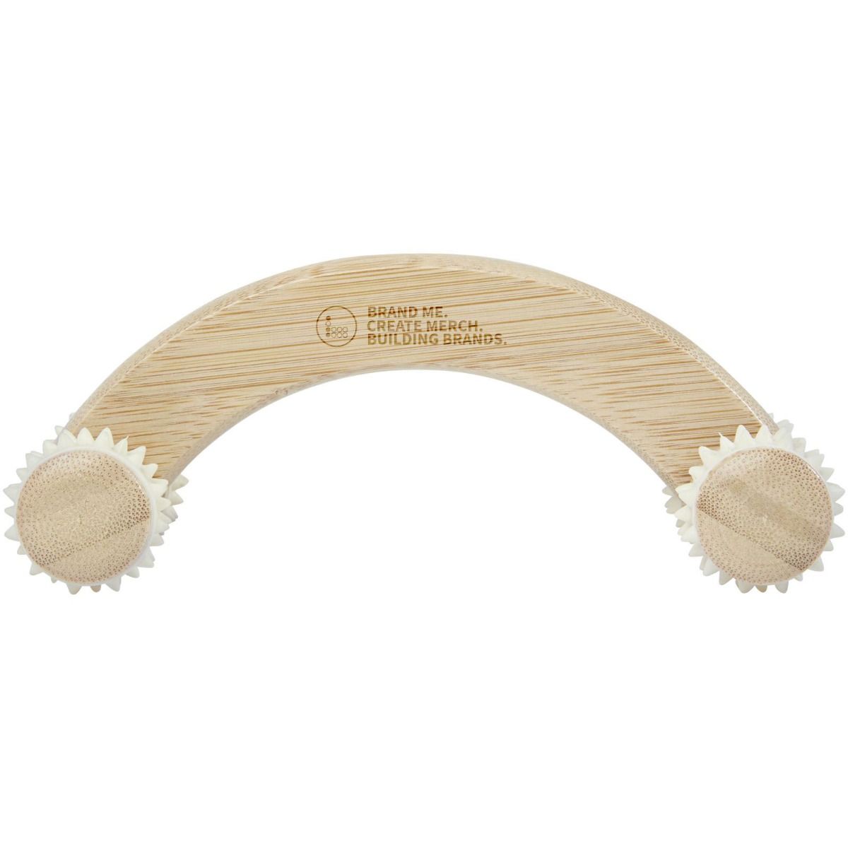 Promotional Volu Eco Bamboo Massager. The Volu bamboo massager is specially designed to massage arms, legs, buttocks, thighs, waist, and abdomen. It releases muscle tension, improves blood circulation, reduces neuralgia, eliminates fatigue, and helps to keep muscles healthy. The bamboo used is sourced and produced following sustainable standards.